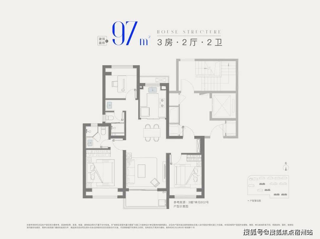 建面约85㎡3房1卫。